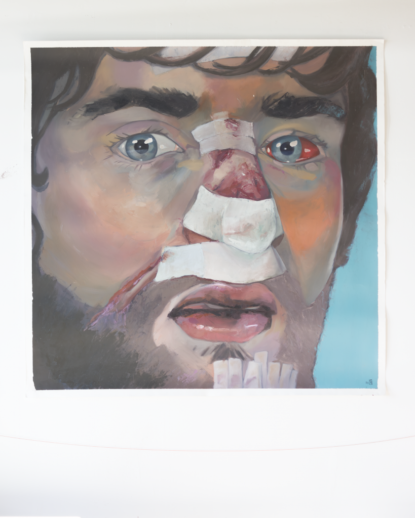 After the first painting in this series was finished, –named “Ikarus”–, the artist began to reflect anew on the subject. This time it felt more relaxed. Not framed by guilt anymore. It felt honest.
