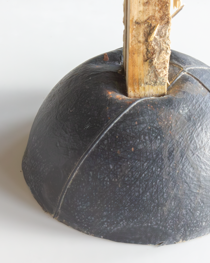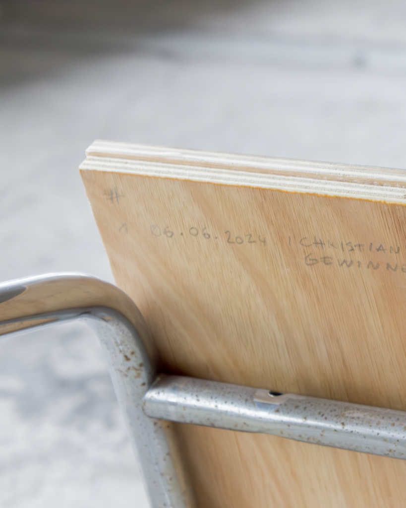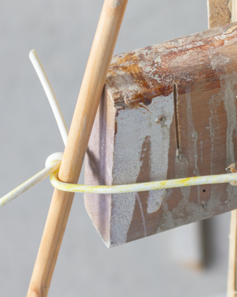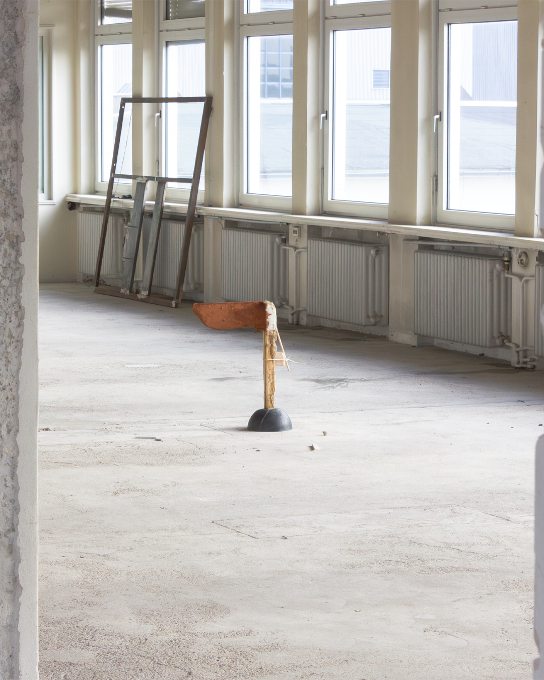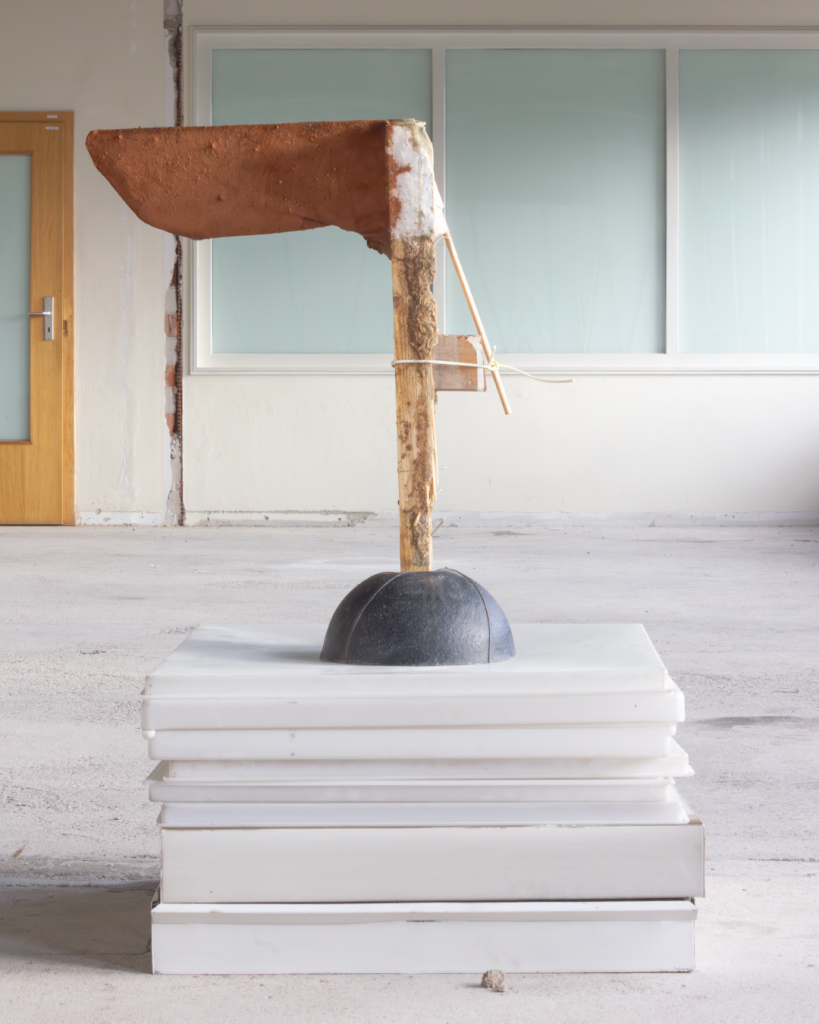 The work is part of an untitled series, which has been developing in the space of the “Bremer Kunst Werke” since 2024. The focus of the work is mainly on materiality, whilst implicating recognizable or guessable form. The restrictions for the work are simple: cannot use newly bought things, must use found material, cannot explicitly represent something else, should reflect how it was made.