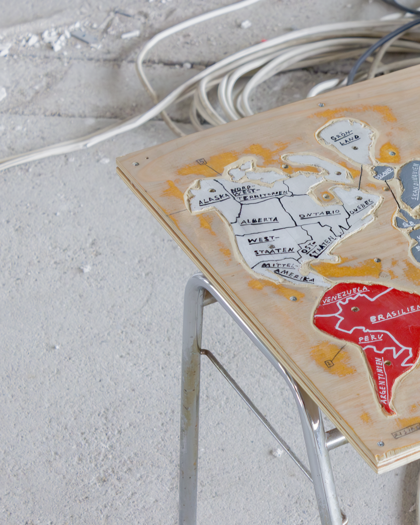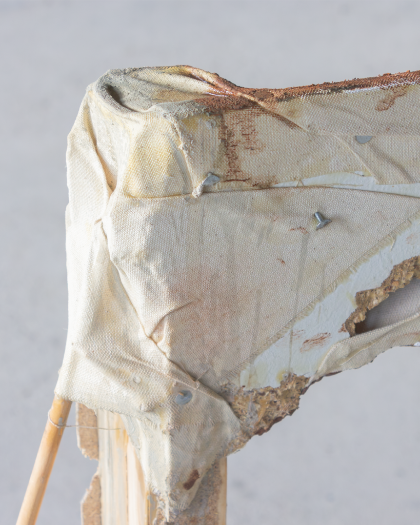 The work is part of an untitled series, which has been developing in the space of the „Bremer Kunst Werke“ since 2024. The focus of the work is mainly on materiality, whilst implicating recognizable or guessable form. The restrictions for the work are simple: cannot use newly bought things, must use found material, cannot explicitly represent something else, should reflect how it was made.